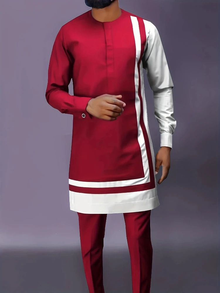 Men's Casual Long-Sleeved Two-Piece Set: Mid-Length Top and Trousers